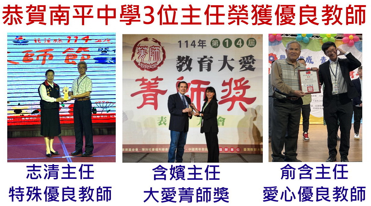 賀~~本校周含嬪主任榮獲大愛菁師獎,陳俞含主任榮獲愛心優良教師,全體師生同賀~~