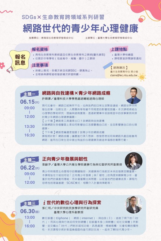 | 二、 | 本研習規劃 3 個場次,詳細內容請參閱簡章或官網。 |