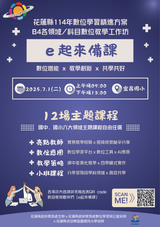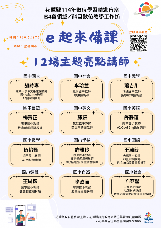 114年7月1日辦理「B4各領域/ 科目數位教學工作坊~e起來備課」鼓勵教師參加