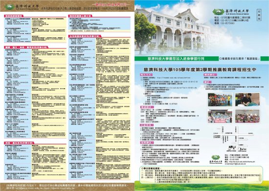 慈濟大學105學年度第2學期推廣教育相關訊息,歡迎各位師生報名