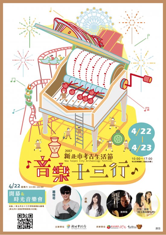 一、「2017 新北市考古生活節」訂於本(106)年 4 月 22 日至 23 日在本館陽光廣場舉辦,以「古代、音樂、體驗」為主題,分設「世界大融爐-世界考古」、「探索古秘境-遺址考古」、「學院闖天關-學院考古」及「輕鬆玩音樂-音樂考古」等 6 大區,以課程體驗、實作等生動活潑方式,提升民眾對環境的知識與覺知。相關訊息及內容請參見活動網站(http://WWW.2017-Kaugu.com.tw/)。