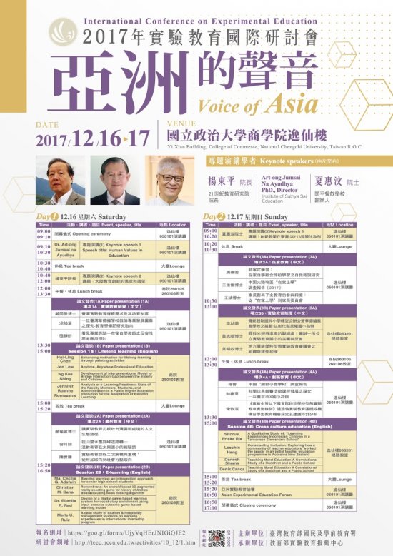 主旨:轉知國立政治大學辦理之「實驗教育國際研討會」議程及報名資訊等,請轉知相關人員踴躍參加,請查照。