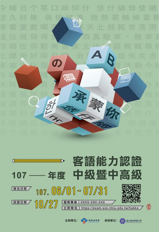 三、敬請張貼學校網站,並提供點閱連結( https://exam.sce.ntnu.edu.tw/hakka ),以公告周知,相關海報檔詳如附件。